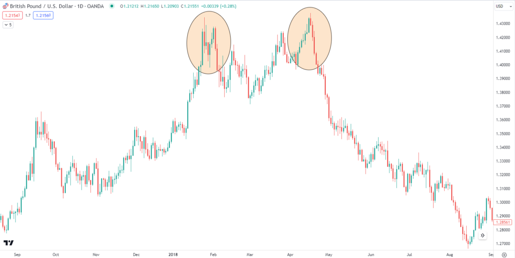 Um exemplo de formação gráfica de reversão é o padrão de topo duplo, que é formado por dois picos consecutivos de altura semelhante, separados por um vale. Esse padrão indica uma possível reversão da tendência de alta e sugere que os preços podem começar a cair.