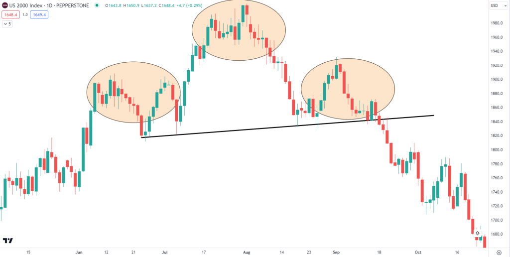 Os traders podem por isso analisar os gráficos das ações, das criptomoedas, do forex ou das matérias-primas e identificar padrões que indiquem uma possível continuação ou mudança na direção do preço.