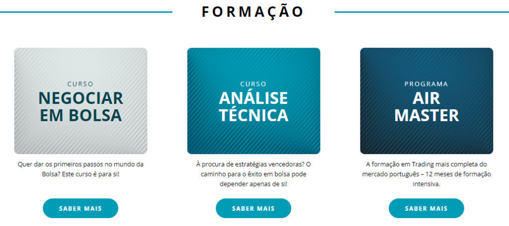 Os cursos de bolsa de valores da AIR Trading são a porta de entrada para quem deseja aprender sobre investimentos e como o mercado funciona. Um dos mais comuns é o curso de Negociar em Bolsa, que é voltado para iniciantes que desejam adquirir conhecimentos básicos. Este curso cobre os fundamentos da negociação e é ideal para aqueles que estão a dar os primeiros passos no mercado financeiro. Contudo, é comum muitos investidores com experiência no mercado, começarem por este curso pois permite-lhes solidificar as bases.